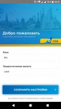 Переходим к софту. Вес приложения не превышает 37 Мб. Данную программу уже установили более 100 тыс. человек. Сначала пользователю предложат выбрать язык и предпочитаемую валюту. Мы остановились на русском и гривнах. Далее двигаемся в трех направлениях: