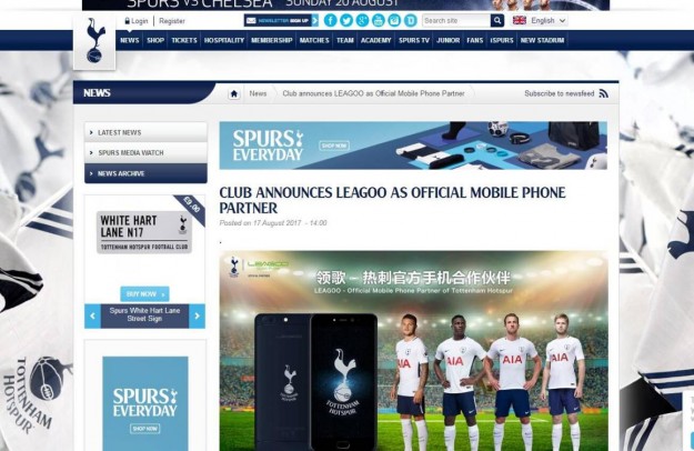Компания LEAGOO стала официальным партнером футбольного клуба «Тоттенхэм Хотспур». Бренды заявили о пятилетнем глобальном стратегическом партнерстве между двумя сторонами на период с июля 2017 года и по июль 2022 года. Так, что в списке спонсоров премьер-лиги появился еще один китайский бренд.