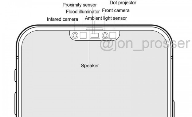 В частности, представлено схематичное изображение (см. ниже), раскрывающее электронное оснащение экранного выреза. В этой области расположатся сенсоры приближения и освещённости, инфракрасная камера, фронтальная камера, проектор инфракрасных точек и модуль подсветки.