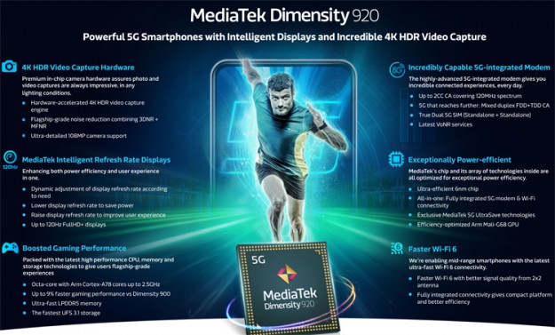Названный процессор изготавливается по 6-нанометровой технологии. Он содержит восемь вычислительных ядер (Arm Cortex-A78 и Arm Cortex-A55) с тактовой частотой до 2,5 ГГц, графический ускоритель Arm Mali-G68 MC4 и модем 5G. Итак, сообщается, что первый смартфон Oppo на базе Dimensity 920 получит 6,43-дюймовый дисплей AMOLED формата FHD+ с частотой обновления 90 Гц и пиковой яркостью 1300 кд/м2. В области экрана расположится сканер отпечатков пальцев. В оснащение войдут 8 Гбайт оперативной памяти LPDDR4x и флеш-накопитель стандарта UFS 2.2 вместимостью 128/256 Гбайт. Питание обеспечит аккумуляторная батарея ёмкостью 4500 мА·ч с поддержкой быстрой 60-ваттной подзарядки.