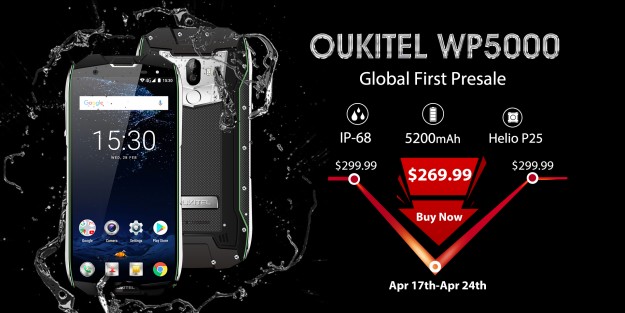 В марте компания Oukitel представила защищенный смартфон WP5000, который 17 апреля поступает в продажу. Цена новинки составит 299,99 доллара, но до 24 апреля его можно будет приобрести со скидкой 30 долларов всего за $269.99. Кроме того, производитель разыгрывает один смартфон.