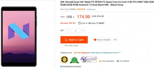 Бренд Chuwi объявил о проведении большой распродажи на страницах популярного онлайн-магазина Geekbuying. Первым лотом этой распродажи стал очень интересный игровой планшет Chuwi Hi9, предлагаемый по необычайно низкой цене $174.99. Устройство примечательно использованием 8,4" дисплея с высоким разрешением 2560х1600 пикселей, процессора с двумя производительными ядрами A72, 4 Гбайт ОЗУ, 64 Гбайт флеш-памяти и операционной системы Android 7.0 Nougat. А небольшой вес и компактные размеры планшета делают его очень удобным спутником в любой поездке.