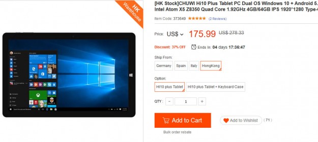 Другим интересным участником распродажи стал Hi10 Plus сразу с двумя операционными системами - Windows 10 и Android 5.1. Он предлагается по очень выгодной цене $175.99. За эти деньги вы получите аппарат на процессоре Cherry Trail Z8350, оснащённый 10,8" дисплеем с разрешением 1920х1200 пикселей, 4 Гбайт ОЗУ, 64 Гбайт встроенной памяти и портом Type-C.