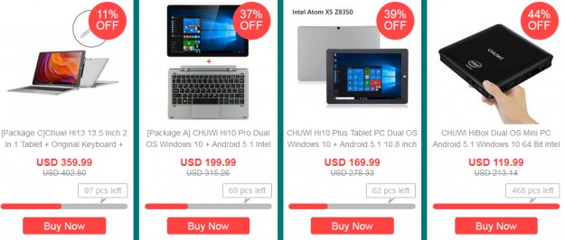 Распродажа техники CHUWI на GeekbuyingНа распродаже техники Chuwi в магазине Geekbuying компания предлагает умопомрачительные скидки, которые будут актуальны 7 дней. Страница распродажи: http://promotion.geekbuying.com/promotion/Chuwi_Brand_Sale
