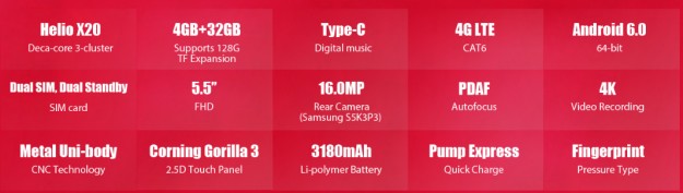 Apollo Lite это первый 10-ядерный смартфон от Vernee с такой мощной производительностью. Он имеет 10-ядерный чипсет Helio X20 с частотой до 2.3ГГц, 4ГБ ОЗУ, 32ГБ накопитель и поддерживает расширение SD-картами до 128ГБ. Его 5.5-дюймовый FullHD экран произведен Sharp, а 16МП камера Samsung S5K3P3 имеет поддержку PDAF. Apollo Lite имеет сканер отпечатков пальцев на задней стороне и поддерживает быструю зарядку. Розничная цена смартфона $229.99 и выпущен в продажу в июне этого года.