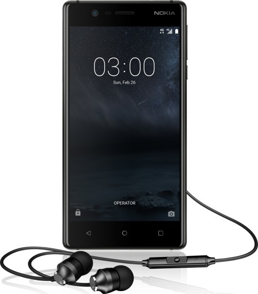 Дизайн Смартфон всем своим внешним видом похожа на старый и хорошо любимый смартфон Lumia 930. В руках Nokia 3 воспринимается как влитая. А все потому, что это монолитный корпус без скрипов и зазоров. Он имеет степень защиты IP52, значит способен противостоять водяным брызгам, но нырять с ним, разумеется, не стоит. Да и ронять на твердые поверхности этот гаджет не нужно. Только если купить полностью защищенный чехол для Nokia 3 можно будет полностью успокоить свою паранойю. Ведь на лицевой стороне экран оснащен стеклом Gorilla Glass с олеофобным напылением, позволяющим легко очищать жировые отпечатки. Потертости и царапины он также собирает весьма неохотно. На рынке будут доступны несколько вариантов расцветок: черная, индиго и медная и др. Оснащение Смартфон оснащен IPS дисплеем размером пять дюймов с разрешением 1280 на 720 точек. Также установлен старый процессор MT6737, шестнадцать гигабайт встроенной и два гигабайта оперативной памяти. С серфингом интернета справляется на «отлично», однако, для игр можно посоветовать решения помощнее. Хотя если снизить запросы приложений по графической части, то можно будет устанавливать и играть даже в самые новые требовательные 3D игры. Стоит также отметить неплохую стабильность операционной системы смартфона. За это можно поблагодарить чистый Android. Обновления будут поступать сразу после их выпуска компанией Google. Для комфортной работы после покупки аппарата будет необходимо установить дополнительные приложения, например, мультимедийный проигрыватель, менеджер файлов. Так, что из коробки удобство использования смартфона оставляет желать лучшего. За это также стоит благодарить чистую операционку. Качество динамика и воспроизводимого им звука выше всяких похвал. Отменная чистота, громкость и отсутствие хрипов на полной громкости. Все как у хороших старых Nokia. Nokia 3, оснащенный аккумуляторной батарейкой на 2630 мАч, обладает средней автономностью. Вследствие малого разрешения экрана и маломощному процессору новинка способна проработать около суток. В заблокированном режиме Nokia 3 включает энергосберегающую технологию Doze 2, в результате чего расход энергии уменьшается. Зарядка телефона до 100% занимает около двух с половиной часов.