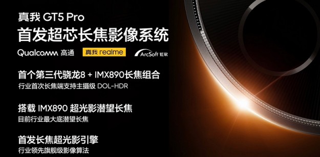 realme GT5 Pro отримає перископічний телеоб'єктив флагманської з датчиком зображення Sony IMX890 з роздільною здатністю 50 МП, діафрагмою F/2,6. Модуль підтримує 3-кратний оптичний зум, електронну та оптичну стабілізацію зображення. realme називає його "найдорожчим телеоб'єктивом у галузі".
