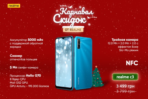 Цена — 8999 грн 8299 грн Детальный обзор камер и аппаратных возможностей смартфона редакция Smartphone.ua уже опубликувала по этой ссылке. realme C3Яркий и праздничный как карнавал — стильный дизайн, качественная сборка, корпус из прочного пластика с защитой от царапин, отпечатков, от падений по углам и граням, все ключевые элементы защищены специальным покрытием от влаги и пыли. Все эти качества доказывают, что это лучший телефон для ребёнка. Большой экран снабжен панелью Gorilla Glass 3. Процессор Helio G70 позволит запускать с realme C3 большинство продвинутых игр и приложений. IPS-матрица обеспечивает смартфону достойное качество изображения и цветопередачи, а также идеальные углы обзора. В телефоне есть разблокировка по отпечаткам пальцев и предусмотрена разблокировка по лицу. Оснащение телефона функцией NFC — приятное дополнением в подобном ценовом сегменте. Плюс более суток автономной работы, которая доступна далеко не всем флагманам.