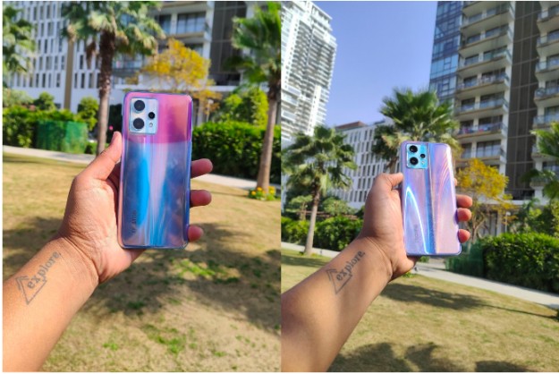 Источником изображений выступает индийское подразделение realme. На фото показан смартфон в синем цвете Sunrise Blue. Фотографии демонстрируют, как тыльная панель устройства постепенно меняет свой цвет с синего на насыщенный розовый. Смена цвета корпуса происходит под воздействием ультрафиолета в солнечных лучах.