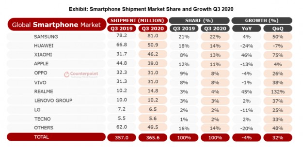30 октября 2020 издание Counterpoint Research назвало китайского производителя смартфонов и AI-гаджетов realme компанией с самым быстрым в мире ростом среди брендов смартфонов. За 3-й квартал 2020 realme удалось достичь отметки в 50 000 000 продаж. Благодаря аккумуляции энергии молодежи, которая является основой фанатов и покупателей realme, компания превзошла мировых конкурентов и достигла показателя в 50 000 000 продаж всего за 9 кварталов. Кроме этого, realme удалось достичь рекордного уровня квартальных продаж в 14.8 миллионов. А с результатом в 132% прироста QoQ в 3-м квартале компания превзошла все ожидания аналитиков. Согласно материалам Counterpoint, темпы роста объема поставок realme показывают "самый быстрый скачок в росте среди основных мировых производителей". Компания realme достигла отметки в 50 миллионов продаж благодаря тому, что пользуется успехом среди молодежи всего мира. Бренду удалось завоевать внимание юных пользователей в разных странах и культурах. "Realme удалось стать одним из топ-5, даже топ-3 брендов на ключевых мировых рынках, включая Индией, Индонезией, Бангладеш, Филиппины и другими странами Южной Азии", утверждает аналитик издания Counterpoint Кумар Абхилаш.