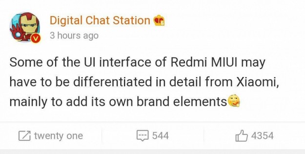 Redmi откажется от MIUI, но собственная оболочка будет отличаться от неё только визуальноКомпания переходит на собственный фирменный интерфейс Оболочка MIUI была создана ещё в 2010 году — она является стандартной для смартфонов Xiaomi и Redmi, однако в ближайшее время MIUI останется только на смартфонах Xiaomi. Известный сетевой инсайдер Digital Chat Station, часто публикующий точные прогнозы, раздобыл эксклюзивную информацию о том, что Redmi переходит на собственный фирменный интерфейс, который будет отличаться от MIUI благодаря добавлению каких-то уникальных собственных элементов. Возможно, визуальные отличия появятся и в прошивке для Xiaomi. Но функционально всё останется по-прежнему — новшества обещаны только по части графического интерфейса (иконки, анимация и т.д.).