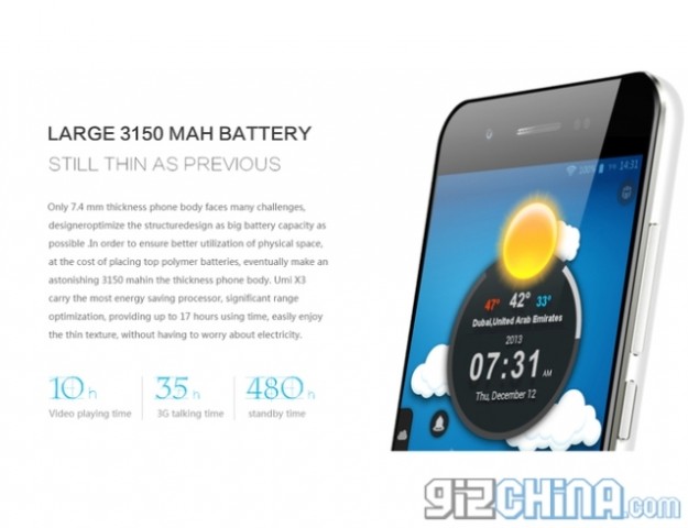 Работает смартфон под управлением ОС Android 4.3. Его размеры составляют 151.2x76.5x7.8 мм, а вес 186 грамм. UMi X3 с 16 ГБ внутренней памяти на борту получил ценник в $225, а за его 32-гигабайтную версию придется отдать $257.