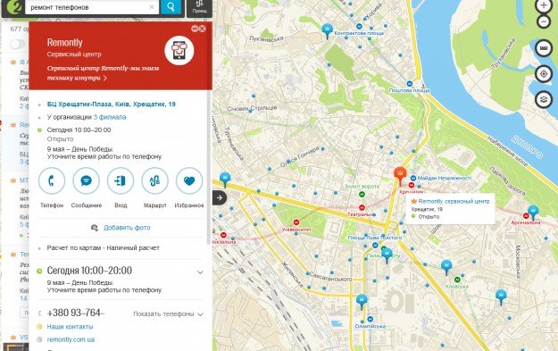 Ремонт телефонов в Вашем городе – ищем сервисный центр на картеСейчас жители нашей страны, а особенно ее столицы, активно используют смартфоны, поэтому услуга по ремонту таких устройств становится весьма востребованной среди населения. Да и ремонт телефонов в Киеве сейчас не проблема. При практическом использовании подобных изделий могут возникнуть поломки, образуемые по причине негативного воздействия со стороны различных явлений обыденной жизни. Большую часть возникших неполадок вполне реально устранить посредством проведения ремонтной деятельности по устранению неисправностей. Но иногда приходится заказывать экран, разъем или камеру у производителя, так как на складах не всегда можно найти нужный элемент для устройства, которое продается небольшими партиями. Для справки отметим, что если смотреть на вывески сервисных центров, то большинство из них предлагают услугу по ремонту техники Apple и всех ее умных телефонов – от iPhone 3G до iPhone 7. Но в большинстве случаев такие компании всеядны и готовы обслужить любого клиента. Проще всего их найти на карте Киева. Там вы увидите расположения, график работы, контакты и ссылку на сайт, если она есть.