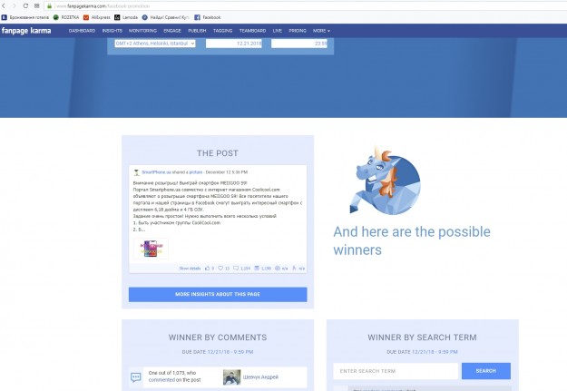 Результаты розыгрыша смартфона MEIIGOO S9Мы рады сообщить Вам, что победителем розыгрыша, который проводился с 12-21 декабря 2018 года, от портала Smartphone.ua и интернет магазина Coolicool.com стал Шевчук Андрей. Он выполнил все условия розыгрыша. Определение победителя проводилось с помощью сервиса Fanpage Karma. Видео розыгрыша - https://www.youtube.com/watch?v=OfVqrvsKyLU. Выигрыш - смартфон MEIIGOO S9, который будет отправлен победителю магазином напрямую их Китая. Поздравляем и благодарим Всех за участие! С победителями свяжемся в ближайшие два рабочих дня. Джерело: SmartPhone.ua Обговорення новиниШевчук Андрей: Ура!!! Большое спасибо! Валентин: Хочу виграть Валентин: Как мне Иво виграть ? Попередні новини