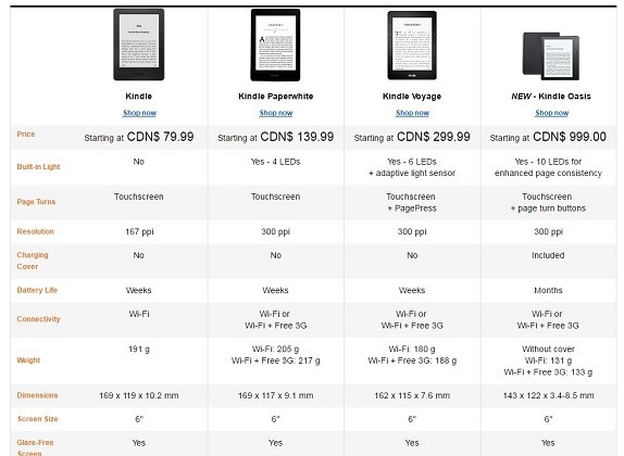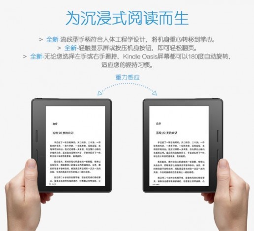 Kindle Oasis будет выполнен в пластиковом корпусе толщиной 3.4-8.5 мм с софт-тач покрытием и двумя механическим кнопками управления. Плотность точек его сенсорного экрана со светодиодной подсветкой составит 300 пикселей на дюйм.
