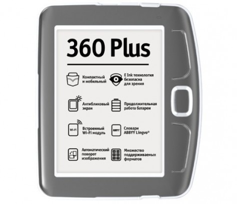 Ридер PocketBook 360° Plus-2012: новая версия с мощным процессоромВ 2011 году компания PocketBook провела «работу над ошибками» (если точнее, то скорее не над ошибками, а просто «работу по улучшению») и представила обновленную версию карманного букридера. Название девайса осталось практически неизменным, за исключением слова Plus в конце – PocketBook 360° Plus. Внешний вид гаджета и основной набор функций остались неизменными. При этом были исправлены главные «недочеты» предыдущей модели – в новинку было установлено более мощное «железо» и добавлен Wi-Fi-модуль. К примеру, в PocketBook 360° использовался 400 МГц процессор Samsung и 64 Мб оперативной памяти. А PocketBook 360° Plus оборудован 533 МГц процессором Samsung и 128 Мб оперативной памяти. Эти изменения в значительной мере сказались на быстродействии ридера, а адаптер беспроводной связи Wi-Fi позволил работать в Интернете непосредственно с самого аппарата. Еще одной особенностью данной модели была возможность запускать игру Doom II – впервые на E-Ink-экране. А в начале 2012 года компания PocketBook представила, скажем так, «третье издание» этого популярного ридера. При этом название модели осталось прежним, то есть таким же, как у ридера 2011 года – PocketBook 360° Plus.