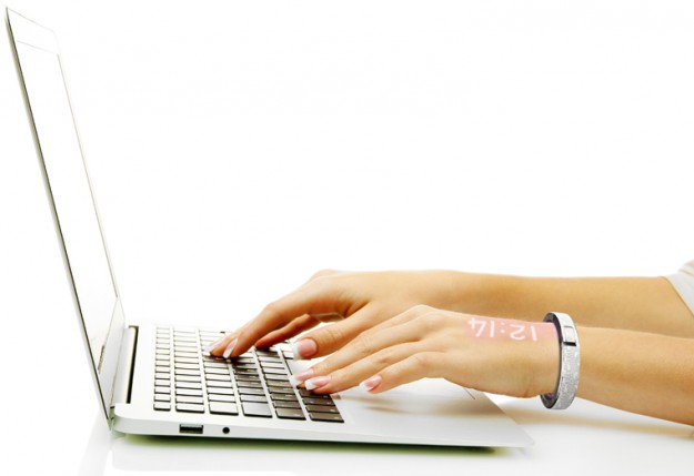 Главной же их особенностью является отсутствие дисплея — его заменил проектор, отображающий всю информацию на внешней стороне ладони пользователя. Кроме того, для оповещения пользователя о том или ином событии в часах используется вибрация, будильник и таймер, а для проекции самого уведомления можно выбрать один из более чем 20 доступных цветов.
