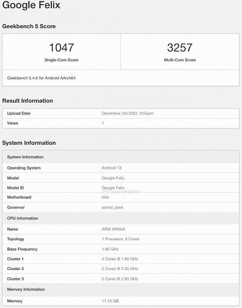 Розкладний Pixel Fold засвітився у бенчмаркуУ базі Geekbench засвітився смартфон Google Felix, який, згідно з усіма наявними даними, являє собою перший розкладний Pixel. Новинку часто називають Pixel Fold, але ім'я може бути якимось іншим. Натомість програмне забезпечення каже нам, що за продуктивністю все буде на рівні Pixel 7/7 Pro, оскільки в основі буде лежати SoC Tensor G2.