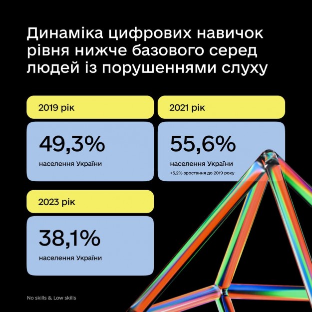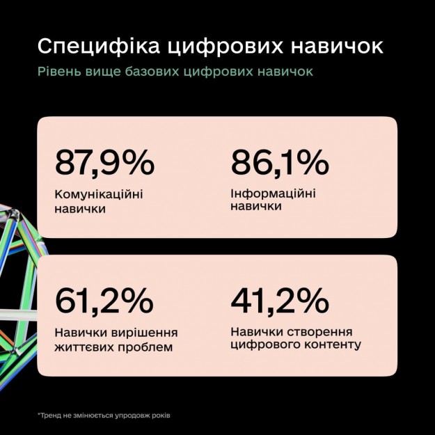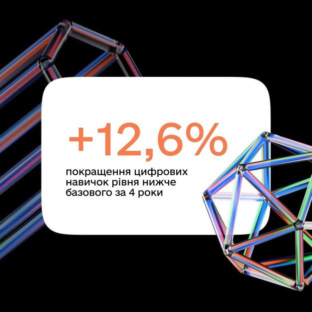 Уже втретє проводимо дослідження, щоб оцінити, наскільки змінилися цифрові навички українців. Маємо круті результати: майже 60% українців володіють базовими та просунутими цифровими навичками — за останні чотири роки їх частка збільшилася на 12,6%.