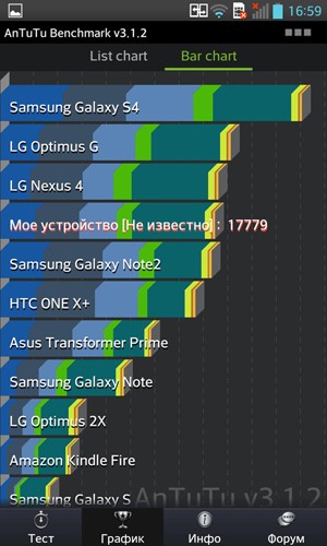Кстати, во время тестирования производительности смартфона LG Optimus G, обзор которого будет опубликован у нас совсем скоро, у нас была возможность сравнить производительность этой трубки и Samsung Galaxy SIV. Результат ниже.