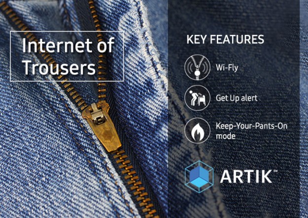 Samsung анонсировала смарт-джинсы, предотвращающие переедание и стрессовые ситуацииЮжнокорейская Samsung не ограничилась одной первоапрельской шуткой, касающегося презентации флагмана Galaxy S8, и анонсировала сегодня еще и новую линейку «умных» IoT-продуктов Samsung Internet of Trousers, в числе которых джинсы разных фасонов с огромным количеством функций.
