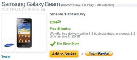 Samsung Galaxy Beam начал продаваться в ВеликобританииНа сегодня все желающие могут приобрести аппарат по цене $616 в магазине eXpansys. Очевидно, что Великобритания - это лишь первая страна среди европейских, где стартовали продажи Samsung Galaxy Beam, а потому в скором времени Samsung Galaxy Beam стоит ожидать и на других рынках стран Европы.