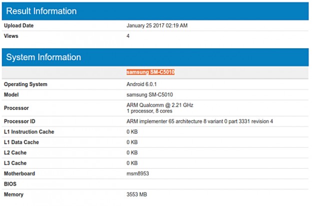 Samsung Galaxy C5 Pro засветился в бенчмарке GeekbenchНе представленный еще официально смартфон Samsung Galaxy C5 Pro прошел тестирование производительности в бенчмарке Geekbench, благодаря чему подтвердились некоторые более ранние слухи о спецификациях модели.