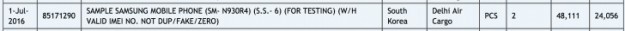 Фрагмент документа Zauba информирует о том, что тестовый экземпляр Galaxy Note7 прибыл на тестирования из Южной Кореи в Индию 1 июля в количестве 2 единиц стоимостью порядка $357 каждая. Розничная цена новинки будет явно намного выше. К сожалению, помимо диагонали экрана никаких других сведений о характеристиках смартфона на сайте Zauba нет. Однако, если верит предыдущим утечкам, смартфон получит 6 ГБ ОЗУ, аккумулятор на 4100 мАч, симметричный порт USB Type-C и 12Мп Dual Pixel основную камеру с инфракрасным автофокусом. Джерело: SmartPhone.ua Обговорення новиниКоментариев пока никто не оставил. Станьте первым! Попередні новини