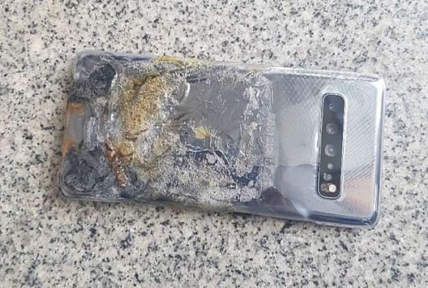 Samsung Galaxy S10 5G загорелся в КорееSamsung Galaxy S10 5G поступил в продажу в начале апреля, а доступность пока ограничена домашним рынком Южной Кореи. Напомним, помимо поддержки сетей пятого поколения, смартфон выделяется огромным 6,7’’ дисплеем, Quad-камерой с ToF-сенсором, двойной фронталкой с еще одной 3D-камерой и аккумулятором на 4500 мАч с быстрой зарядкой 25W. Так уж сложилось, что именно эта версия стала героем первого фиаско, связанного с серией Galaxy S10. На южнокорейской платформе Naver опубликована история гибели Galaxy S10 5G, грустная часть которой включает возгорание и взрыв. Подкреплена она фотографиями поврежденного гаджета, который, очевидно, восстановлению не подлежит.