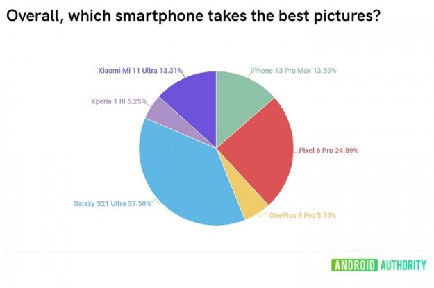 Samsung Galaxy S21 Ultra назвали смартфоном, который делает лучшие фотоЭксперт портала Android Authority Роб Триггс (Rob Triggs) провёл опрос среди посетителей сайта, чтобы выяснить какие флагманские смартфоны делают лучшие фото. Для этого он выполнил серию снимков на флагманские смартфоны 2021 года — в эксперименте участвовали Apple iPhone 13 Pro Max, Google Pixel 6 Pro, OnePlus 9 Pro, Samsung Galaxy S21 Ultra, Sony Xperia 1 III и Xiaomi Mi 11 Ultra.