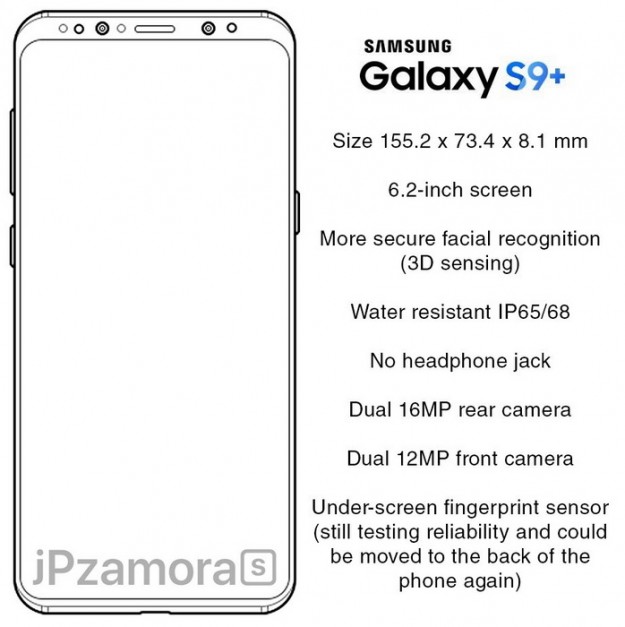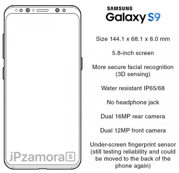 Samsung Galaxy S9: без аудиоразъема, но с двойной селфи-камеройВ следующем году Samsung планирует развить те преимущества, на которые опиралась в линейке смартфонов этого года, попутно исправив не самые удачные решения (например, местоположение сканера отпечатка). В Сети появилась ранняя информация о ключевых особенностях Galaxy S9 и Galaxy S9+, которая не порадует любителей традиционных наушников. Если эти данные подтвердятся, то будущие флагманы лишатся разъема 3,5 мм в угоду снижению толщины нижнего отступа, очевидно. Последнее свойство хорошо проявляется на опубликованных рендерах. К другим опубликованным особенностям семейства Galaxy S9 отнесем двойную 16-Мп камеру, двойной (!) 12-Мп фронтальный модуль (вспоминаем недавний анонс ультратонких сенсоров), на который будут возложены функции 3D-распознавания лица, защищенный по стандартам IP65/68 корпус и тот же формат дисплея. Габариты Galaxy S9 – 144,1 x 68,1 x 8 мм, а старшей модели – 155,2 х 73,4 х 8.1 мм. Наконец, пока неизвестны сроки реализации сканера отпечатка пальца в стекле – прежние слухи говорили об интеграции его в Galaxy Note 9, но теперь рассматривается возможность его внедрения в Galaxy S9.