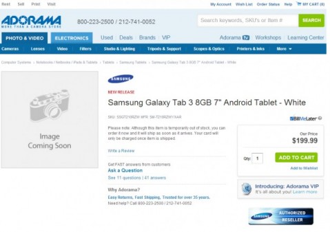 Samsung Galaxy Tab 3 7.0 получил ценовую бирку в $199Американский онлайн-магазин электроники Adorama первым опубликовал на своем сайте стоимость нового Samsung Galaxy Tab 3 7.0. Планшет получил ценовую бирку в $199.