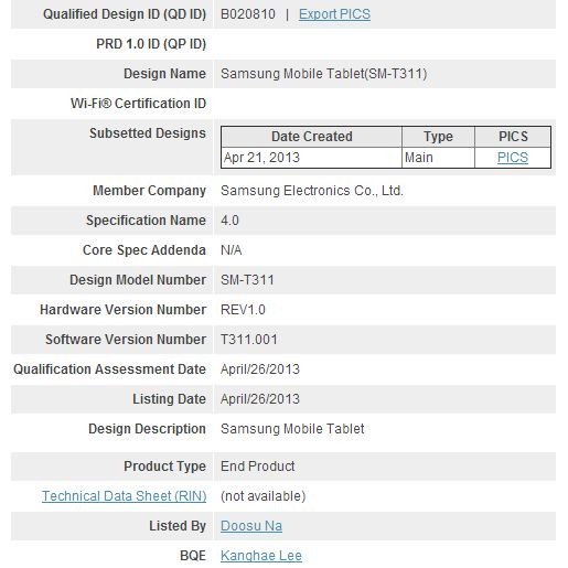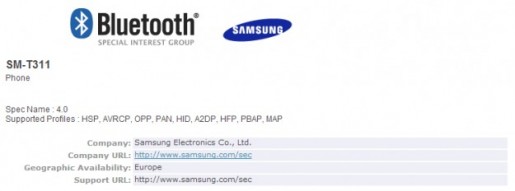 Samsung Galaxy Tab 3 8.0 засветился на сайте Bluetooth SIGНеанонсированый ранее 8-дюймовый Samsung Galaxy Tab 3 был замечен на сайте организации Bluetooth SIG, занимающейся вопросами стандартизации и сертификации Bluetooth устройств. Девайс упоминается в документе организации как "Samsung Mobile Tablet" (SM-T311). Напомним, согласно последней информации веб-ресурса SamMobile, SM-T311 является Wi-Fi-версией Tab Galaxy 3 8.0, в то время как 3G-версия имеет номер модели SM-T310.