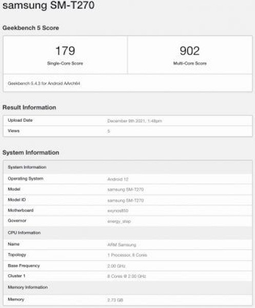 Помимо этого, грядущий планшет был замечен в базе данных бенчмарка Geekbench. Согласно результатам тестирования, новинка получит 8-нм чипсет Exynos 850, который будет работать в связке с 3 Гбайт оперативной памяти. Планшет будет работать под управлением Android 12, вероятно, совмещённой с оболочкой One UI 4. К сожалению, дата запуска устройства пока не сообщается, однако предполагается, что Samsung Galaxy Tab A8 Lite выйдет на рынок в ближайшее время. Джерело: 3DNews.ru Обговорення новиниКоментариев пока никто не оставил. Станьте первым! Попередні новини