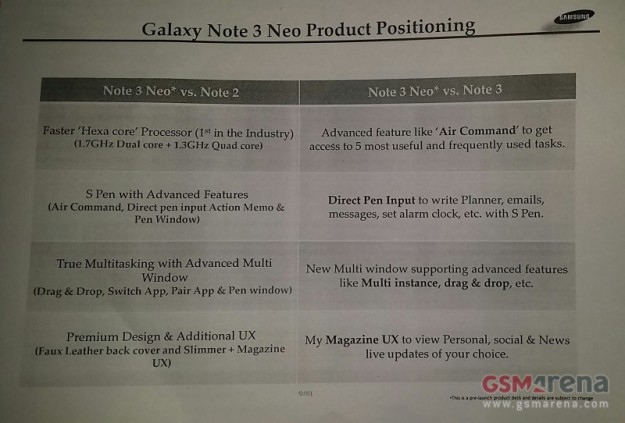 Samsung готовит к анонсу "6-ядерный" смартфон Samsung Galaxy Note 3 NeoСогласно утечке внутренних документов компании Samsung, опубликованных веб-ресурсом GSMArena, стал известен полный перечень технических характеристик не представленного еще официально смартфона Galaxy Note 3 Neo.