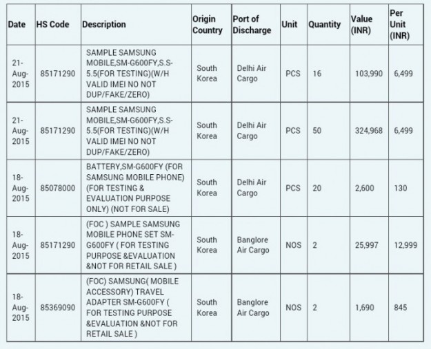 Фрагмент документа Zauba информирует о том, что Galaxy Grand On будет оснащен 5-дюймовым дисплеем, а Galaxy Mega On достанется экран диагональю 5.5 дюймов. Согласно документации, стоимость меньшей из новинок составит $98, а большей - $100.