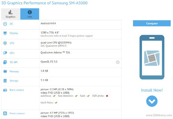 Samsung готовит к анонсу "упрощенный" Galaxy Alpha с 64-битным Snapdragon 410В популярном бенчмарке GFXBench был замечен не представленный еще официально смартфон компании Samsung с индексом SM-A5000, который, исходя из заявленных спецификаций, является "упрощенной" версией флагманского Galaxy Alpha.