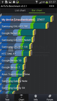 Но справедливости ради отметим, что тактовая частота процессора, который участвовал в тестировании Samsung I9500 Galaxy SIV 1,8 ГГц, тогда как на рынке Samsung I9500 Galaxy SIV будет с чипом Exynos 5 Octa, частота процессора которого 1,6 ГГц.