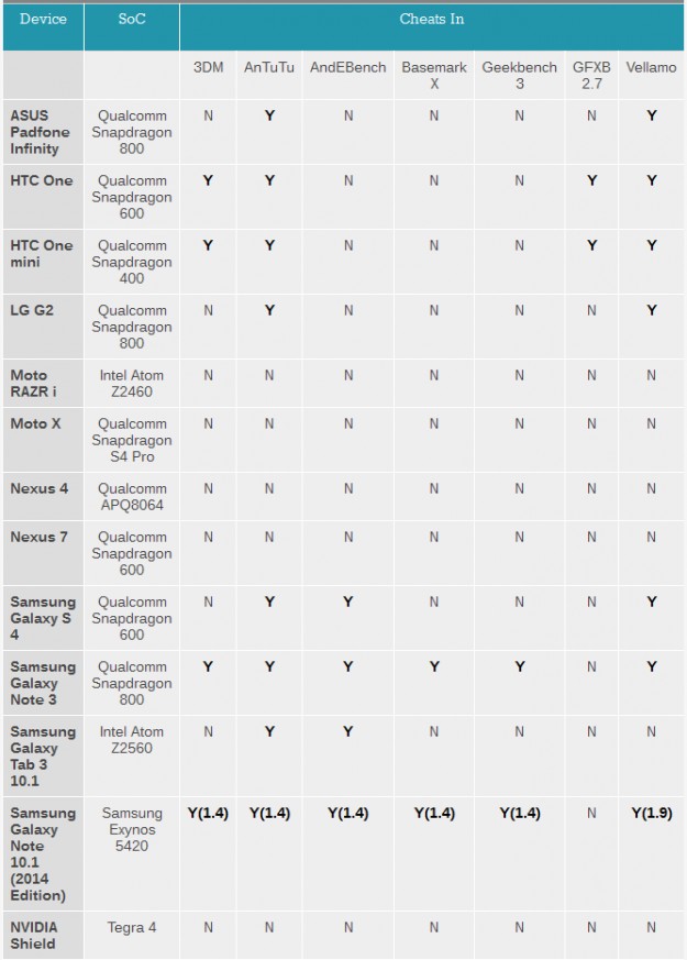 Но, как оказалось, не только Samsung грешит подобными вещами. По словам специалистов AnandTech, к таким действиям могли быть причастны и другие производители смартфонов, за исключением компаний Apple и Motorola. Технологический портал даже представил список устройств, которые способны мухлевать в бенчмарках. Джерело: SmartPhone.ua Обговорення новини