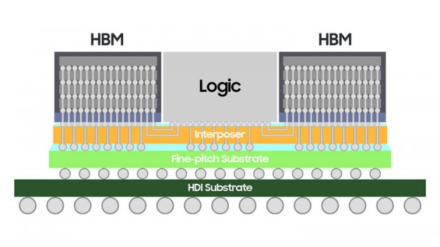 Технология H-Cube предполагает использовать дополнительную подложку с относительно широким шагом контактов для установки на монтажную плату (материнскую плату и тому подобное). В терминологии Samsung — это подложка HDI (High-Density Interconnection). Такая промежуточная подложка сравнительно недорогая и её можно сделать довольно большой без существенного увеличения себестоимости будущего чипа (2.5D-сборки). Все вышестоящие подложки — то есть подложку с маленьким шагом контактов для установки интерпозера и сам интерпозер можно сделать даже меньше для большей компактности. Для этого, например, шаг контактов интерпозера Samsung уменьшила на 35 %. Такая мера позволит также установить на интерпозер больше чипов. В частности, предложенная Samsung технология H-Cube допускает размещение на одном интерпозере процессора (логики) и шести микросхем памяти HBM.
