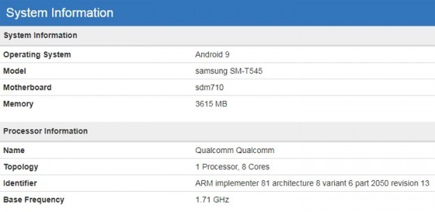 В базе данных бенчмарка Geekbench появилась информация о новом планшетном компьютере Samsung, который фигурирует под кодовым обозначением SM-T545.