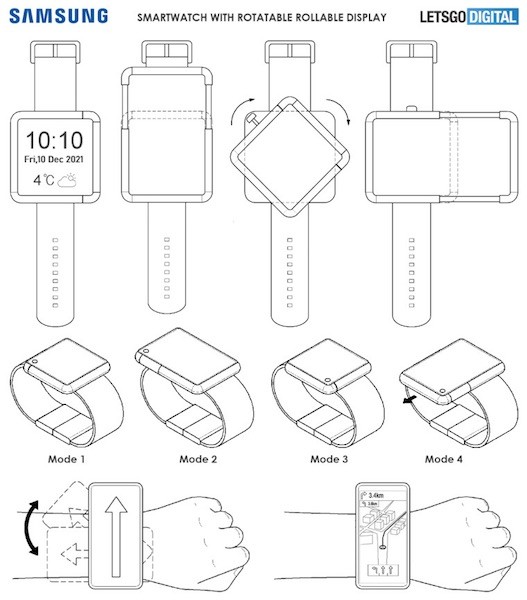 Патент, заявка на который была подана Samsung во Всемирное ведомство интеллектуальной собственности (WIPO) в июне, содержит подробную информацию о смарт-часах с дисплеем, который разворачивается для увеличения полезной площади. Кроме того, предусматривается возможность поворота экрана для использования как в портретной, так и в альбомной ориентации.