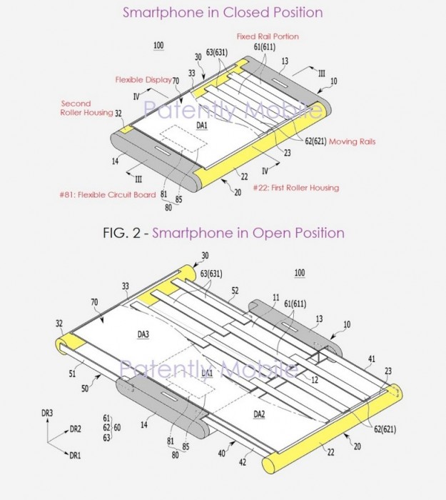 Samsung запатентовала смартфон с экраном переменной диагоналиПоследние пару лет постоянно появляется информация о патентах различных производителей, в которых описываются смартфоны со сгибающимися дисплеями. Обычно они имеют форм-фактор раскладушки, а дисплей может либо прятаться в сложенном состоянии либо огибать устройство с обеих сторон.
