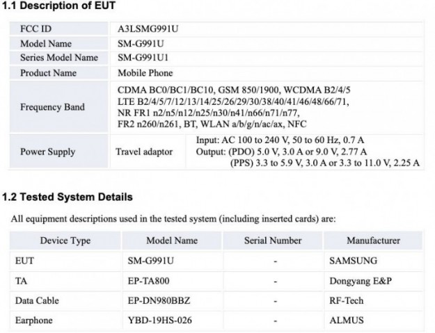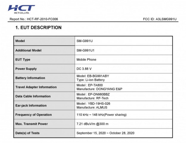 Сертификация FCC раскрыла мощности зарядки Samsung Galaxy S21Вслед за сведениями о материалах корпуса и расцветками устройств линейки Samsung Galaxy S21 в Сети всплыли результаты сертификации младшей модели в базе американского регулятора FCC. В связанной с ним таблице обнаружилась модель аккумулятора (EB-BG991ABY) и предназначенное для него зарядное устройство (EP-TA800), мощность которого составляет 25 Вт. Помимо этого имеется упоминание 9-Вт реверсивной беспроводной зарядки, которую, как и его предшественник, будет поддерживать базовый Galaxy S21. Иначе говоря, какого-то прогресса в скоростях заряда в следующему поколении Samsung, скорее всего, не предложит – по крайней мере в базовой модели из пластика.