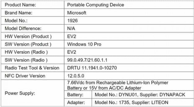 Сертификация говорит о наличии адаптера Wi-Fi 6 у планшета Microsoft Surface Go 2