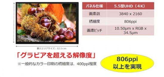 Новая разработка японского производителя является первым в мире мобильным дисплеем 4K. А вместить такое количество пикселей в панель производителю удалось благодаря их маленькому размеру — 10.5 мкм х3.
