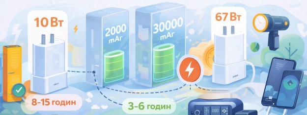 Багато людей вірять, що якщо смартфон або павербанк підтримує швидку зарядку, то він автоматично буде заряджатися дуже швидко від будь-якого зарядного пристрою. Але на практиці це не так. Швидкість зарядки майже завжди залежить саме від зарядного блоку, який ви підключаєте до розетки. Зарядний пристрій - це прилад, який передає електроенергію від розетки до вашого гаджета. Якщо він слабкий, то навіть найсучасніший смартфон буде заряджатися повільно. Відмітимо, що в багатьох сучасних смартфонах блоки живлення в комплекті або всього на 10 Вт, або відсутні, а тому обирати і купувати зарядні пристрої Xiaomi та інших відомих і перевірених брендів будете самостійно. А тому варто знати термінологію. Для прикладу, потужність зарядки вимірюється у ватах. Ват (Вт) - це показник того, скільки енергії зарядний пристрій може передати за одиницю часу. Наприклад, стандартна зарядка від старого смартфона зазвичай має потужність близько 10 Вт. А сучасні зарядні пристрої Xiaomi можуть видавати 33 Вт, 67 Вт або навіть більше. Саме тому Xiaomi активно просуває тему швидкої зарядки: їхні зарядні блоки здатні передати більше енергії за короткий час, але без шкоди для акумулятора. Чому великий павербанк не зарядиться за годинуПавербанк - це переносна батарея для зарядки інших пристроїв. мАг (міліампер-година) - це показник ємності акумулятора. Чим більше число, тим більше енергії він може зберігати. Павербанк на 20000 або 30000 мАг має дуже велику батарею. Це означає, що для його зарядки потрібно багато енергії і часу. Якщо заряджати павербанк на 20000 мАг звичайною зарядкою на 10 Вт, повна зарядка може зайняти приблизно 8–10 годин. Для павербанка на 30000 мАг цей час легко зростає до 12–15 годин. Тепер порівняймо з потужним зарядним пристроєм Xiaomi на 67 Вт. За такої потужності павербанк на 20000 мАг може зарядитися приблизно за 2–3 години, а модель на 30000 мАг - за 3–3,5 годин. Різниця очевидна. Той самий павербанк, але правильна зарядка економить вам півдня часу. Це ж стосується зарядних станцій, ліхтарів, кемпінгових ламп і навіть деяких ноутбуків. Якщо зарядний пристрій слабкий, ви просто втрачаєте час.
