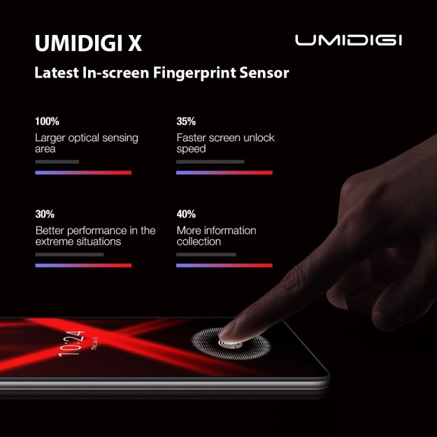Есть в основном два типа сканеров отпечатков пальцев на экране: оптический и ультразвуковой сканер. За исключением флагманов Samsung Galaxy S10 и Note 10, все новые телефоны упомянутых компаний используют оптический датчик отпечатков пальцев, построенный той же компанией Goodix. В теории ультразвуковой сканер более безопасен, поскольку он использует звуковые волны для отображения 3D-печати уникального эпидермиса пользователя, в то время как оптические сканеры полагаются на световую информацию для захвата 2D-фотографии отпечатка большого пальца. Но не было никаких доказательств, подтверждающих, что ультразвуковое решение является более безопасным, чем оптическое решение. И реальный тест от многих рецензентов подтвердил, что оптический датчик отпечатков пальцев на экране работает быстрее, чем ультразвуковой. Вот один из тестов: UMIDIGI X оснащен оптическим сенсором отпечатков пальцев последнего поколения, предлагаемым Goodix.