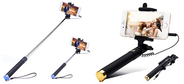 За $3.99 любителям селфи предлагается селфи-палка для съемки себя любимых. Достаточно вставить смартфон, улыбнуться и дистанционно активировать процесс съемки. Длина палки может быть от 18.5 см в сложенном состоянии, до 110 см в полностью раскрытом. При этом вес устройства всего 45 грамм.