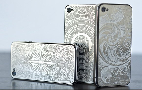 Форма у iPhone 4/4S такова, что вариантов модернизации внешности устройства масса, причем речь идет не только о всевозможных чехлах. Например, можно облачить заднюю панель в кожу, дерево или просто-напросто открутить ее и заменить на металлическую. Все делается в течение нескольких минут. Но парни в Skinit решили еще более упростить процесс для желающих увеличить количество стали в корпусе смартфона. Они создали наклейки из гравированного стального листа. Вообще, изначально Skinit специализировалась на виниловых наклейках на манер Gelaskins, но в отличие от конкурента эта компания предлагает нанести на аксессуар не только картины и иллюстрации известных современных мастеров, но также самому создать его оформление с помощью встроенного в сайт простого и удобного редактора.
